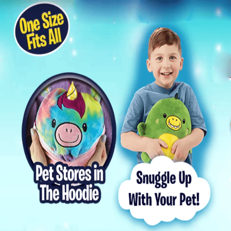 Van een superzachte knuffel verandert hij in een zachte en warme capuchon, waardoor hij de perfecte metgezel wordt voor autoritten en tevens dienst doet als knus kussen.