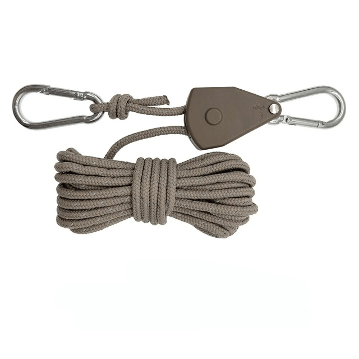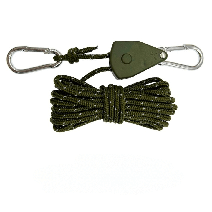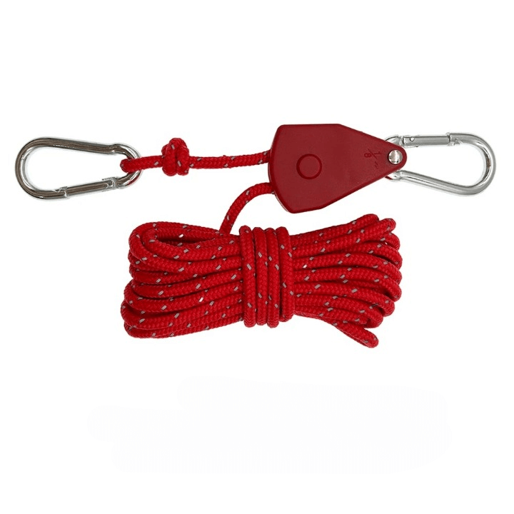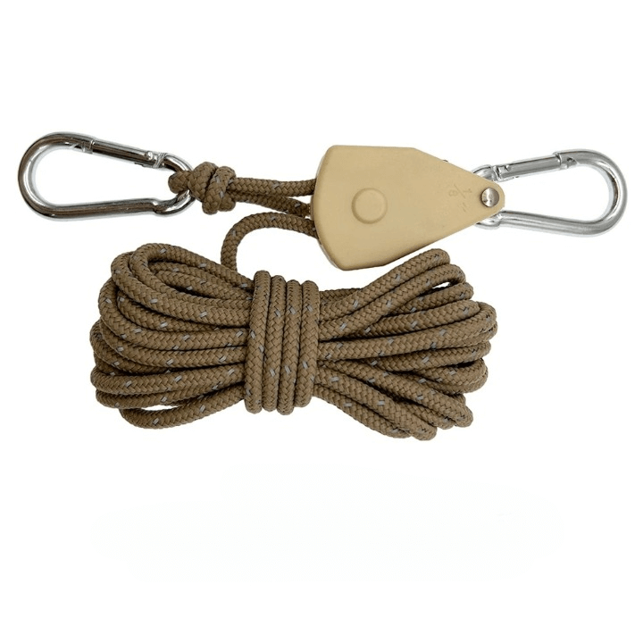 Verstelbaar spansysteem: Het slimme katrolontwerp maakt het eenvoudig om het touw met één ruk te spannen - zonder ingewikkelde knopen te leggen of extra gereedschap te gebruiken. Dit maakt het opzetten sneller en efficiënter.