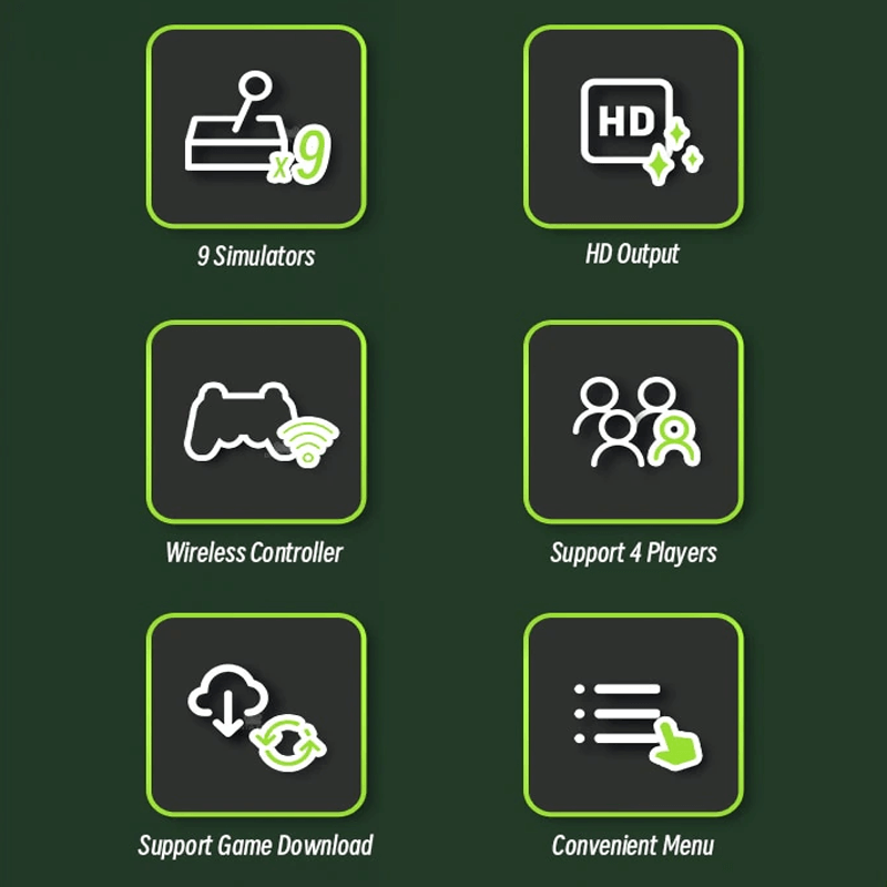 Voel de spanning van vroeger wanneer je verbinding maakt met je tv, pc of projector en geniet van je favoriete games in volledig 1080P HD. Het is alsof je weer 10 jaar oud bent, toen elk spel een avontuur was en elk level een nieuwe uitdaging.