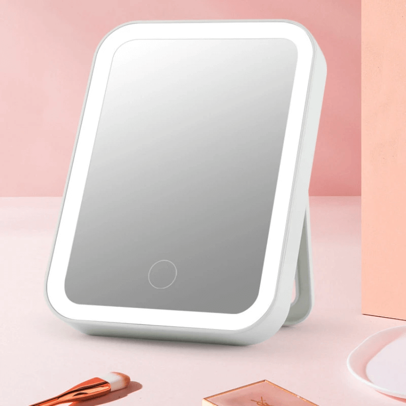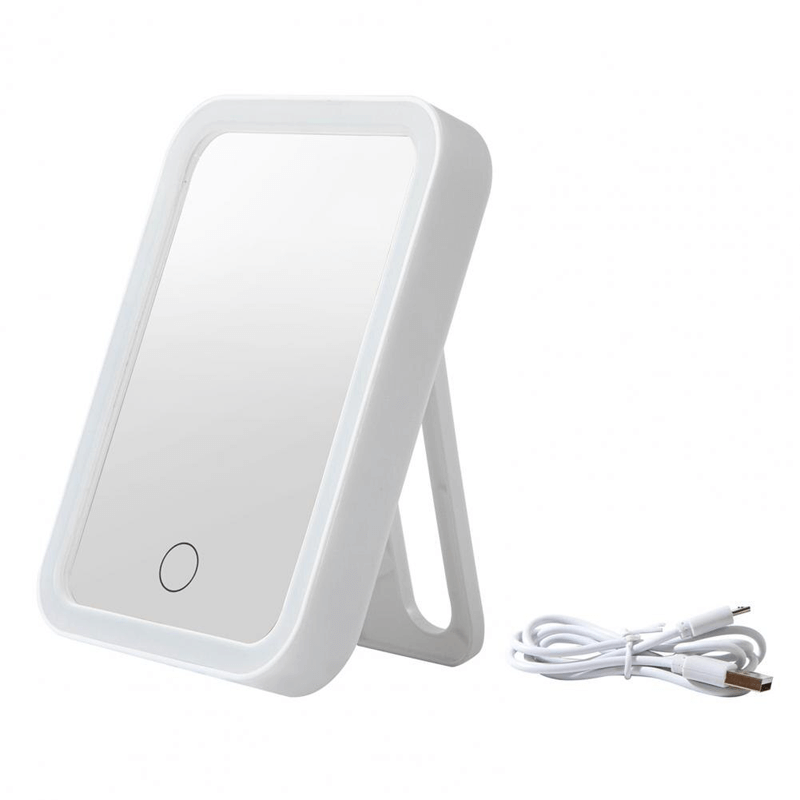 Praktische draagbaarheid - Neem je schoonheidsroutine overal mee naartoe met deze draagbare make-upspiegel. Dankzij het compacte en lichtgewicht ontwerp kun je hem gemakkelijk opbergen in je rugzak of koffer.