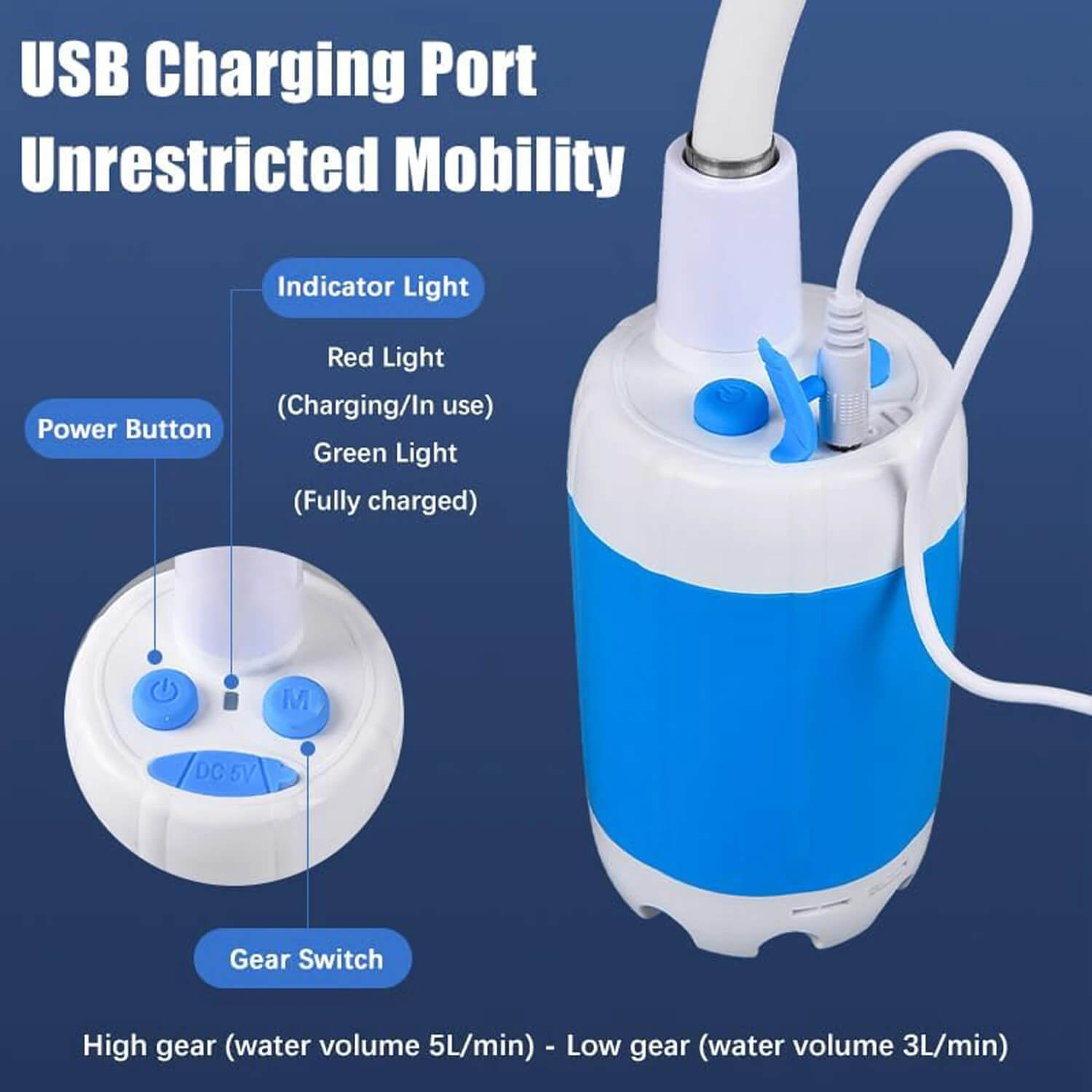CampFlow draagbare waterpomp met douchekit is de perfecte oplossing voor al uw behoeften buitenshuis en thuis. Hij is veelzijdig en gemakkelijk te gebruiken, waardoor hij ideaal is voor kamperen, tuinieren, schoonmaken en nog veel meer.
