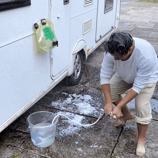 "Of je nu onderweg wilt douchen, je planten water wilt geven zonder gedoe met een tuinslang of je auto snel wilt schoonmaken, CampFlow doet het in een handomdraai.
