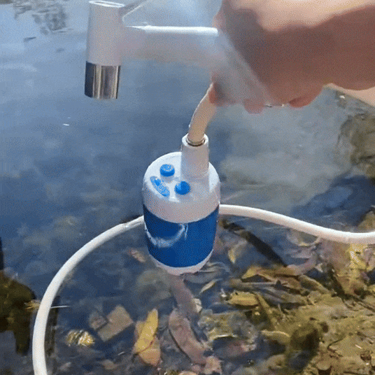 Dompel de pomp onder in een emmer, meer of beek - overal waar je toegang hebt tot water.