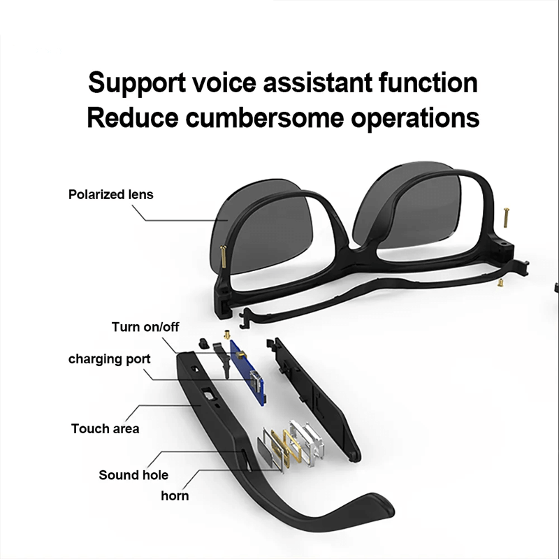 De slimme Bluetooth-bril biedt een perfecte combinatie van geavanceerde technologie en een stijlvol ontwerp en biedt gebruikers een naadloze audio-ervaring en superieure oogbescherming, waar ze ook naartoe gaan.