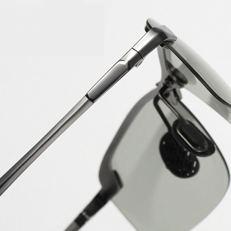 Deze zonnebril is perfect voor gebruik overdag in zonlicht en 's nachts in donkere omstandigheden. De glazen zijn gepolariseerd en passen zich aan het licht aan voor perfect zicht.