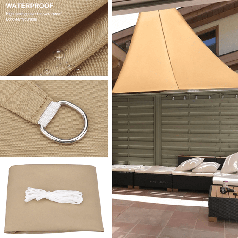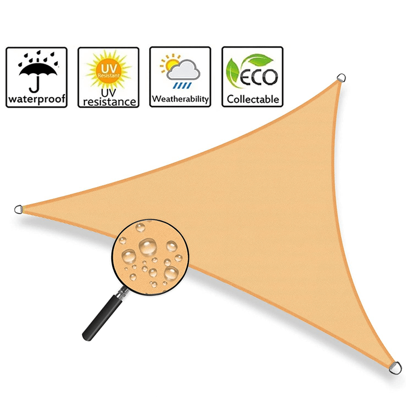 Bescherm jezelf tegen schadelijke UV-stralen - Het Triangle Sunshade Zeil is gemaakt van 185 grams UV-beschermde schaduwstof van hogedichtheidpolyethyleen (HDPE), die tot 90% bescherming tegen de zon biedt en je beschermt tegen 98% van de schadelijke UV-stralen. Je kunt van je buitenruimte genieten zonder je zorgen te maken over zonnebrand of andere schadelijke effecten van de zon.