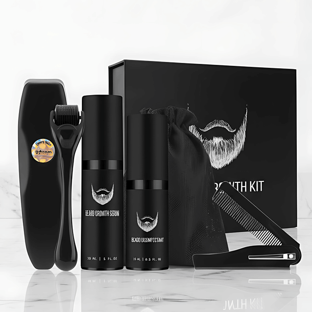 - ✅ Komplett lösning – kit med serum, roller, spray och kam för skäggvård i flera steg