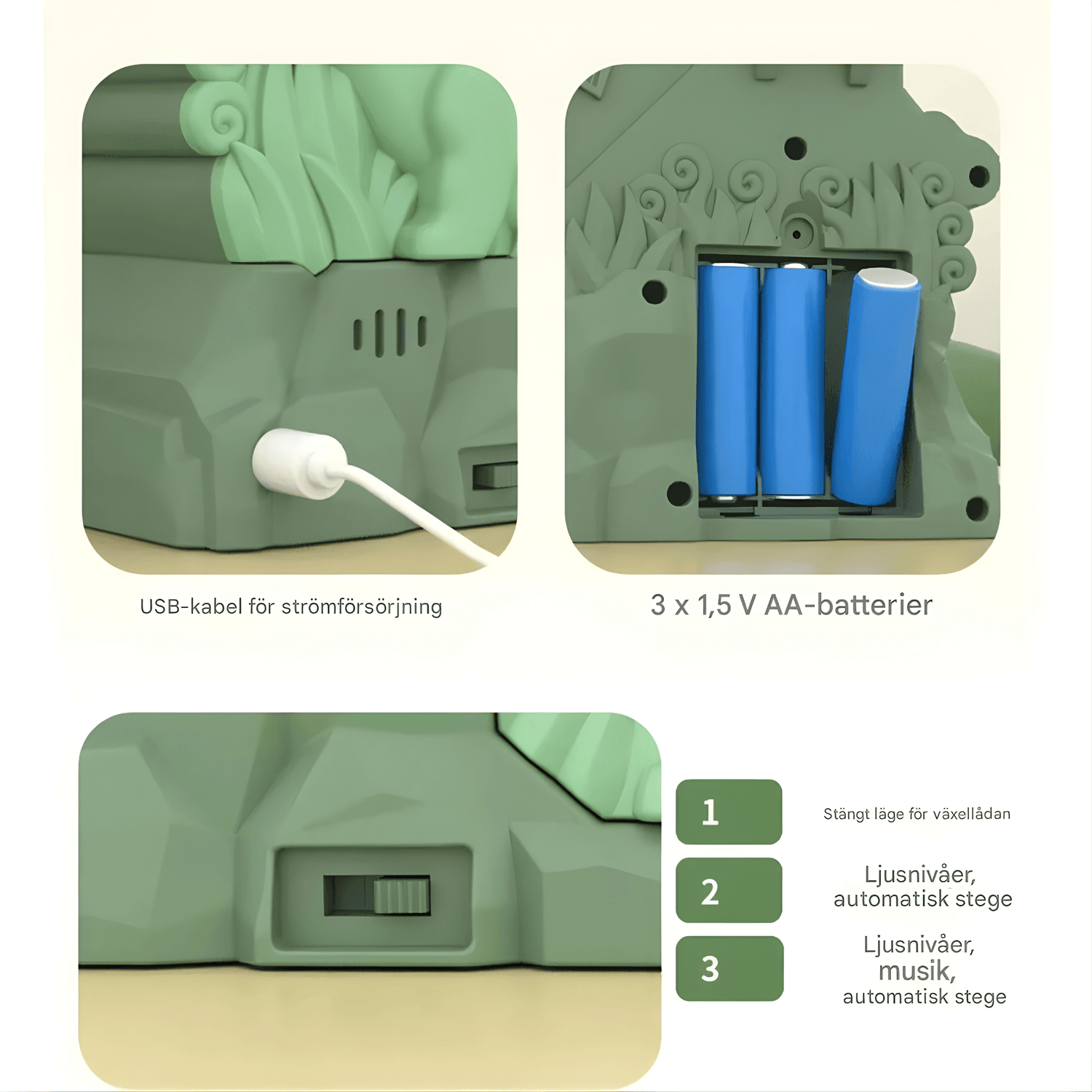 - 🎶 Ljus- och musikfunktion – kan stimulera barnets sinnen och förstärka lekstämningen