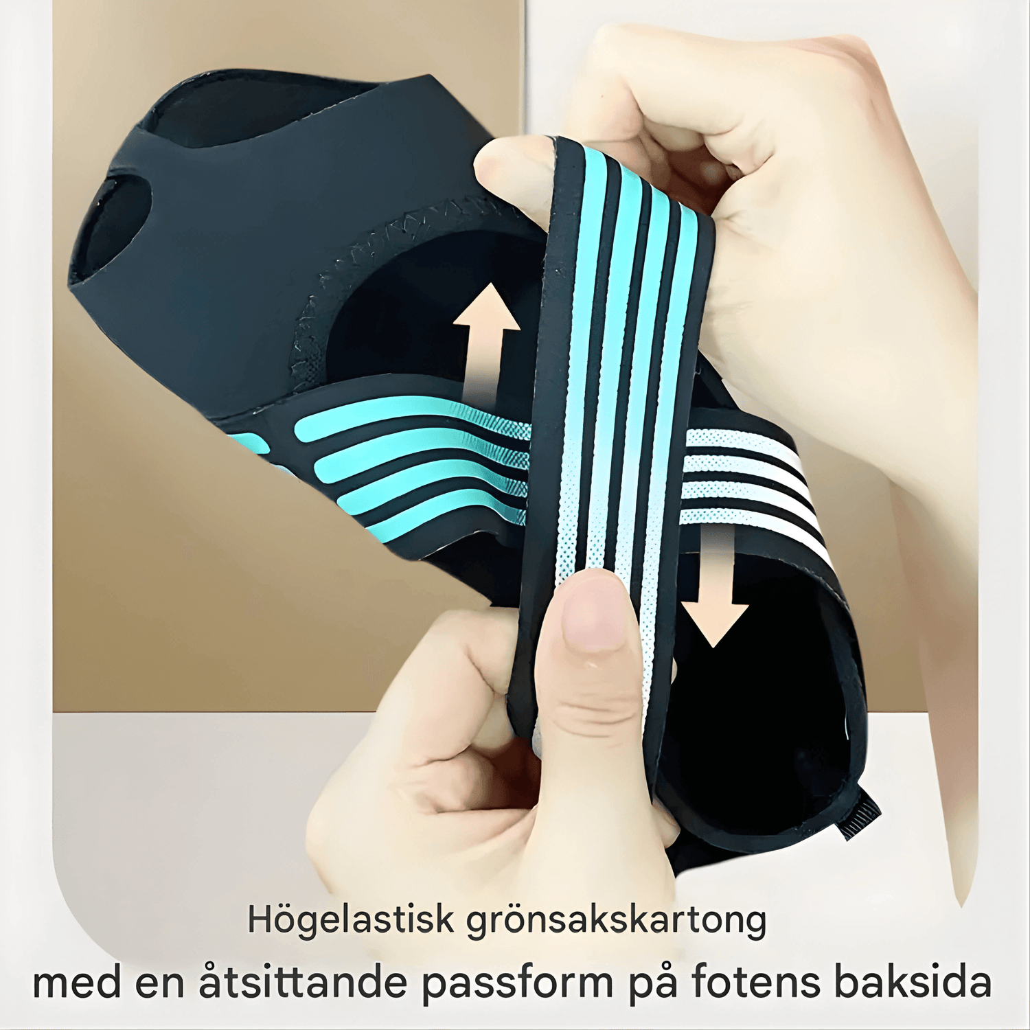 - Justera så att silikonen på undersidan ligger mot fotens tryckpunkter.