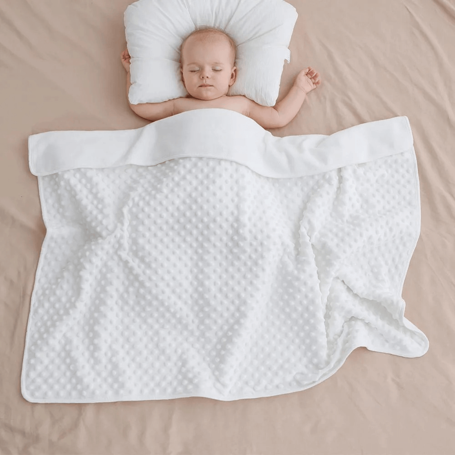 Tillverkad av högkvalitativ polyesterfleece som kan ge en extra mjuk och omhuldande känsla mot barnets hud, vilket kan bidra till trygghet och komfort under vila eller lek.