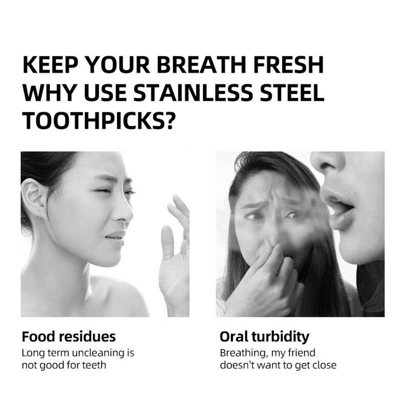 Verbetert de gezondheid van uw gebit - Zorg voor een optimale mondhygiëne met de tandenstoker set. Deze herbruikbare tandenstokers zijn gemaakt van eersteklas 304 roestvrij staal en bieden een superieure duurzaamheid en een glad poetsresultaat.