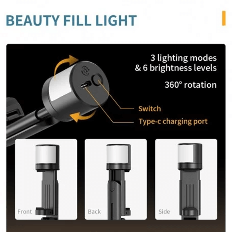 ✅ Verlicht je creativiteit - Ervaar fotografie in een heel nieuw licht met de 360° LED-lichtfunctie van onze selfie stick. Met drie kleurstanden (warm, koel, midden) en een roterend uiteinde kun je levendige kleuren en perfecte belichting toevoegen aan je foto's.